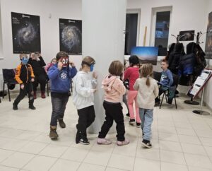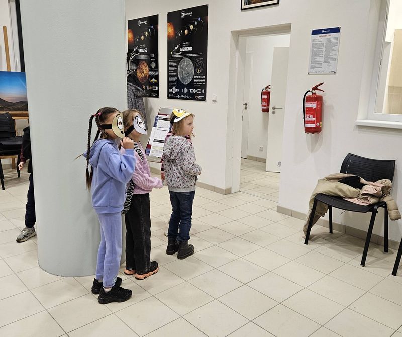 Souběžně u nás proběhla část kouzelné Noci s Andersenem. Přivítali jsme děti v doprovodu pedagogů a knihovnic z Městské knihovny Kadaň. Abychom mladým objevitelům vesmír co nejvíce přiblížili, připravili jsme pro ně kromě astronomického pozorování také tematickou hru s planetami a drobný fyzikální pokus s vrtulníkem. Naším cílem bylo ukázat jim poutavou formou fascinující jevy, které se odehrávají přímo nad našimi hlavami. Soudě podle jejich nadšení a radostných ohlasů se tento záměr vydařil.